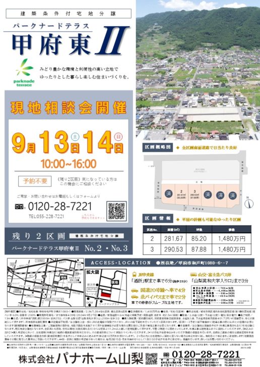 残り2区画。気になっている方はこの機会にぜひご見学ください。現地でスタッフが様々な疑問にお答えします。