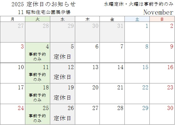 11月の展示場定休日は