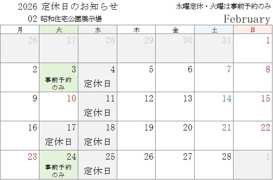 1月の展示場定休日は