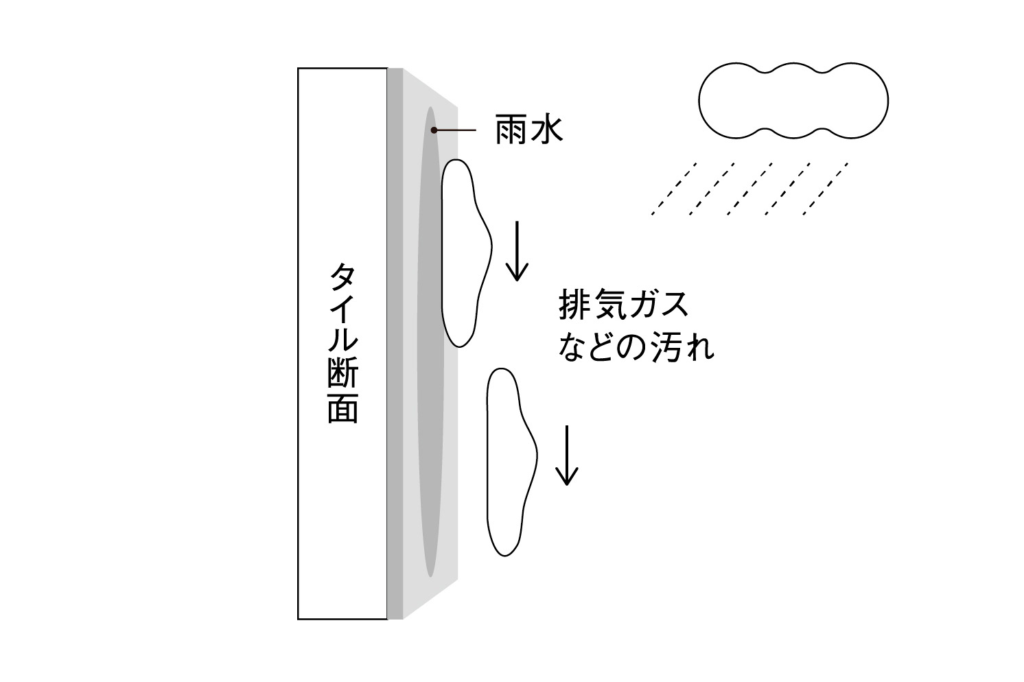 光触媒を表面に焼き付けたキラテックタイルは、太陽の光に当たることで、汚れを分解して雨で流れ落ちやすくすることができます。