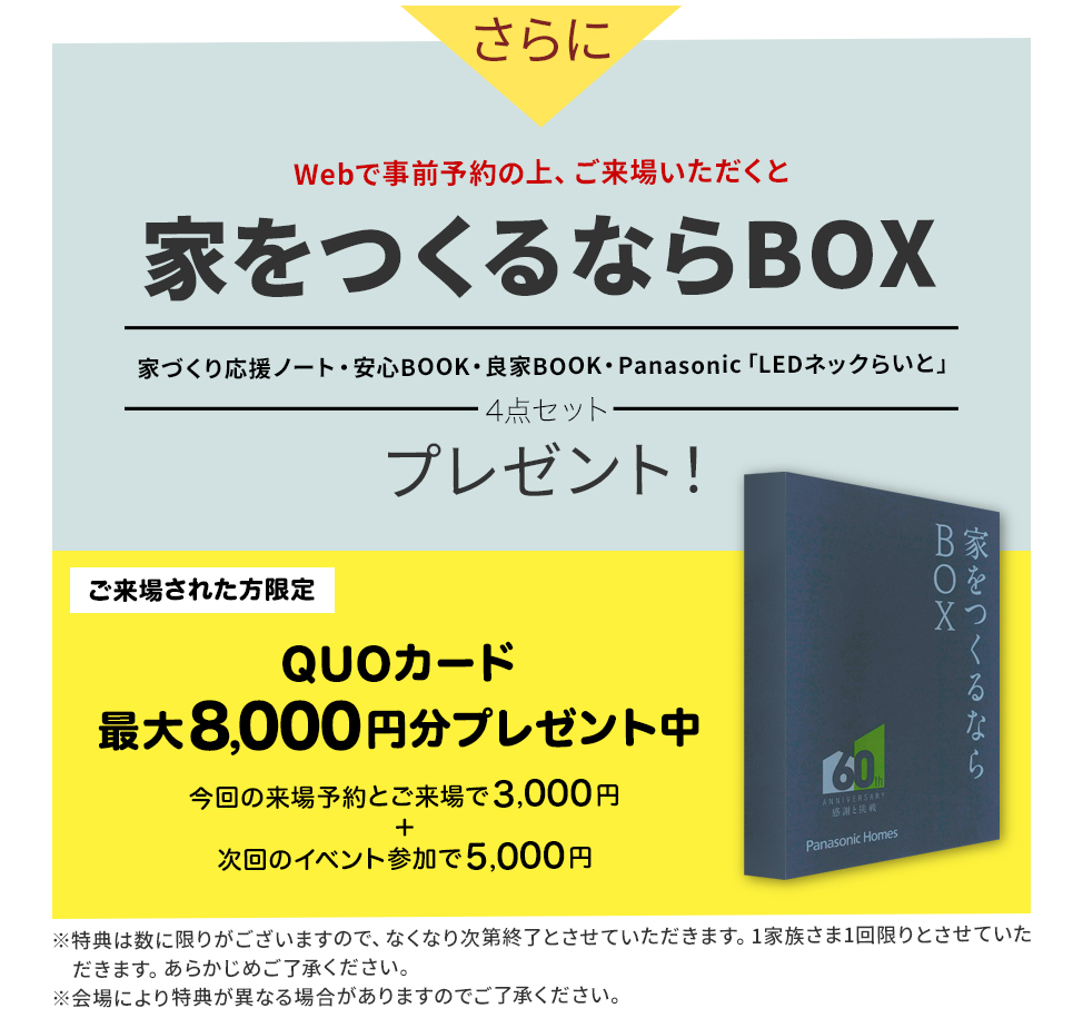 現地のご案内はご予約の方優先となります。Webからご予約いただいた上でご来場されますと、今なら様々な特典をプレゼント。ぜひ下記のボタンからご予約の上、ご来場ください。