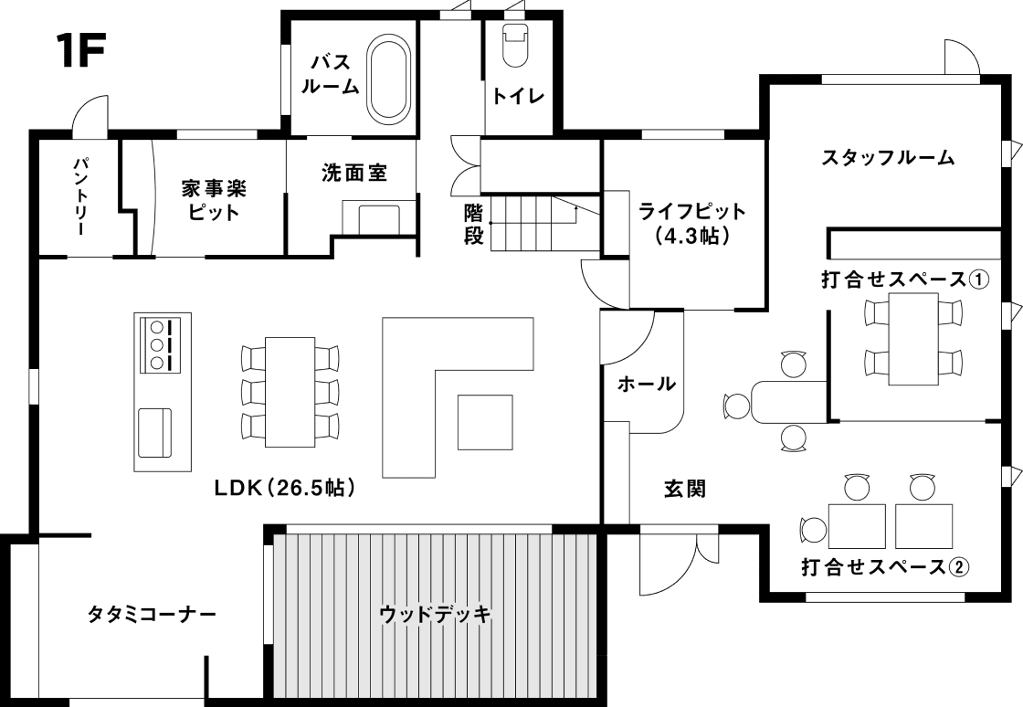 - ※玄関ホール・ライフピット・スタッフルーム・打ち合わせスペースを除きます